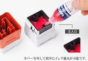 通常時は印面が収納されていますので連続使用時はフタを取ったままでも作業が進められます。