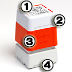 (1)便利な見出し付きで捺印も便利(2)滑りにくいラバーグリップの持ち手で使い勝手は抜群です。 (3)本体カバーをはずすとインクの補充が可能です。 (4)バネ式の可動式の印面が内蔵されています。 印面は通常時は収納されているので連続使用時はフタをはずした 状態のままの使用が可能です。 |