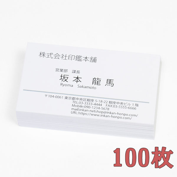 ![]() 名刺 カード100枚 両面 台紙:ホワイト 印字色:モノクロ 紙箱入り |