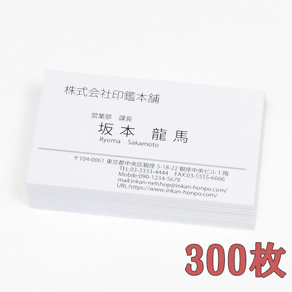 ![]() 名刺 カード300枚 片面 台紙:ホワイト 印字色:モノクロ 紙箱入り |