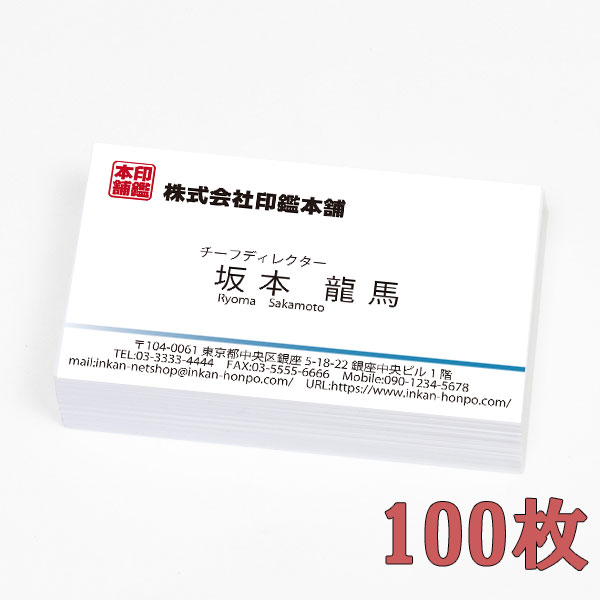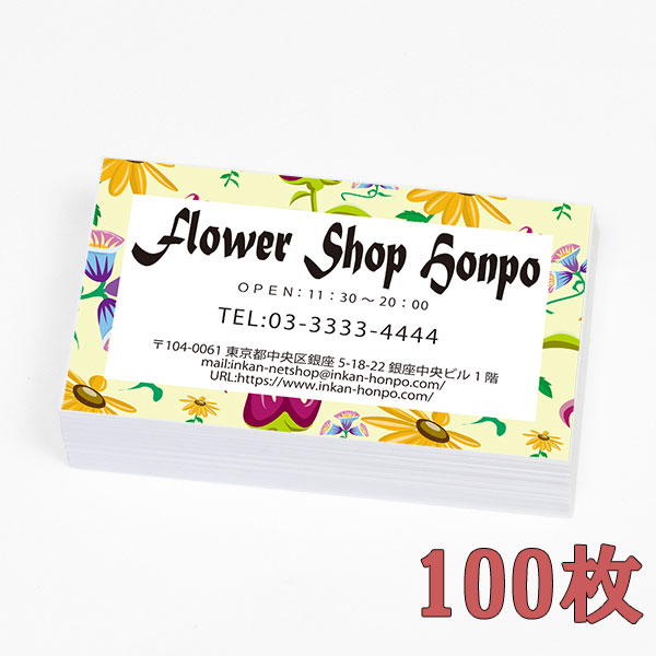 ![]() 名刺 カード100枚 片面 台紙:ホワイト 印字色:カラー 紙箱入り |
