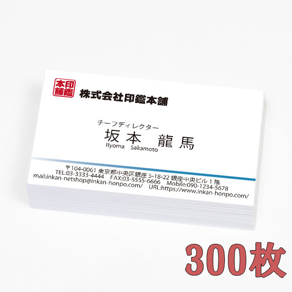 ![]() 名刺 カード300枚 両面 台紙:ホワイト 印字色:両面カラー 紙箱入り |
