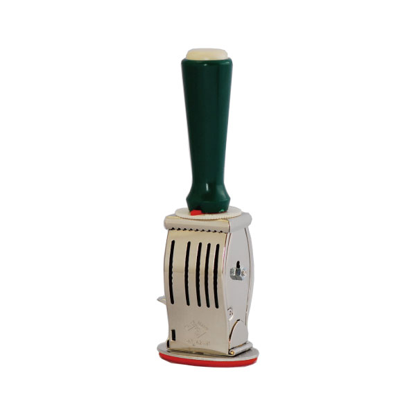 ボディは堅牢流線型スタイル ボディの材質は真鍮製でメッキがついているので輝きがあります。 堅牢流線型スタイルで重厚な風格のある完成品です。 特許取得時番号PAT.421191がボディ正面に刻印されています。 アイエス製4連・5連ギア使用によりベルトの回転もスムーズです。 |