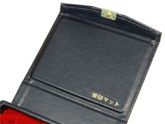 内張りのフタ部分は高級捺印マット仕様になっており、印鑑収納部分は朱肉による汚れの目立ちにくい赤の別珍調になっています。