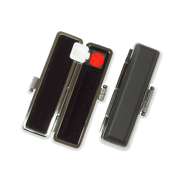 ![]() ご印鑑ケース [丸寸胴用] チタンカラーケース シルバー 印鑑長さ約60mm 直径13.5mm〜15mm用 簡易朱肉付き [CA-G7-15] |