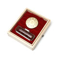 高級木材として家具等に使用されている桐の無垢材でできた印鑑ケースと朱肉を同時収納するタイプのセットケースです。 |