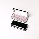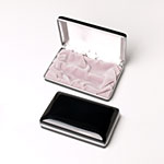 光沢のある塗装を施した、印鑑ケースを収納する金属製ボディのケース。 |