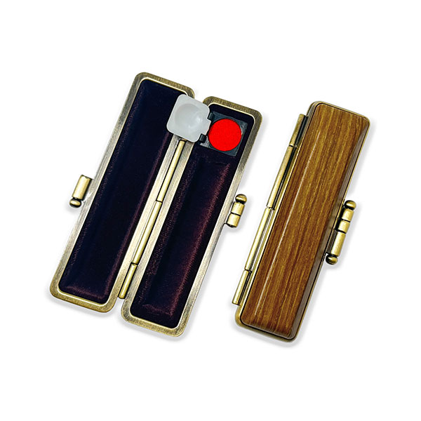 ![]() ご印鑑ケース [丸寸胴用] 木目調ケース アグニ ブロンズ枠 印鑑長さ約60mm 印面直径13.5mm〜15mm用 簡易朱肉付き |