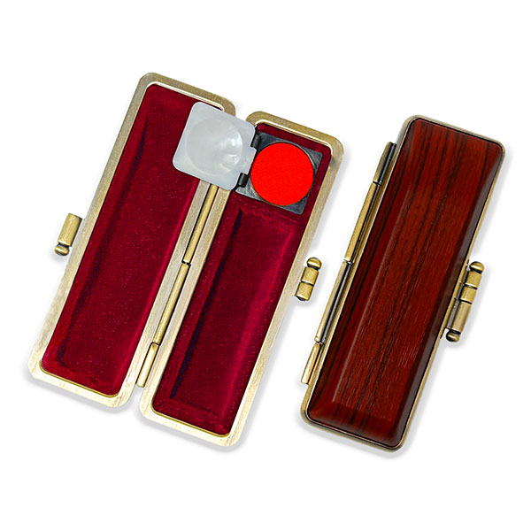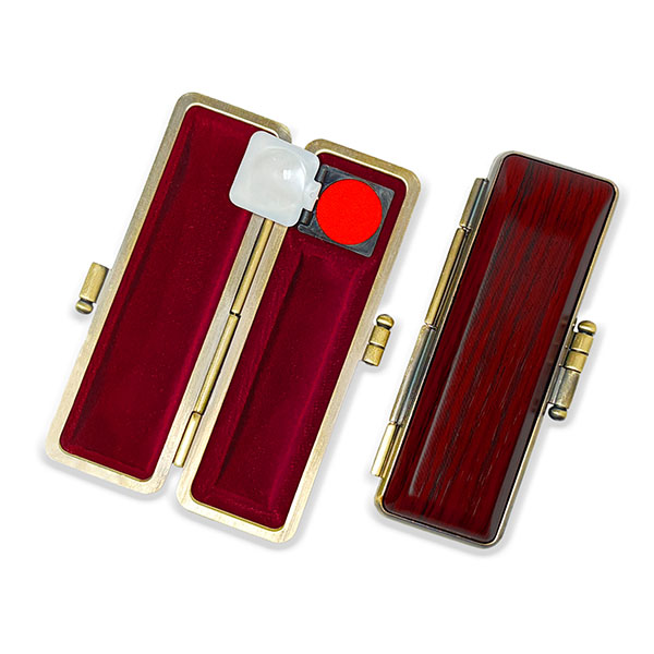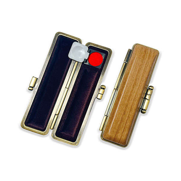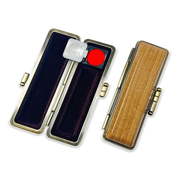 ![]() ご印鑑ケース [丸寸胴用] 木目調ケース アグニ ブロンズ枠 印鑑長さ約60mm 印面直径16.5mm〜18mm用 簡易朱肉付き |