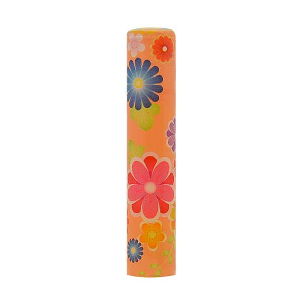 恋するはんこ[個人印鑑]・A和柄・花かおり-橙・NK-033・印面直径約12mm×長さ約60mm・ケース別売り