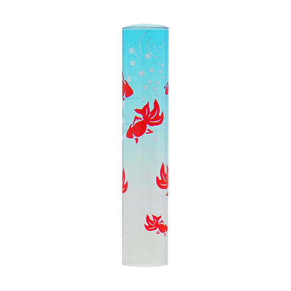 恋するはんこ[個人印鑑]・B和柄・風流金魚-青・NK-079・印面直径約12mm×長さ約60mm・ケース別売り