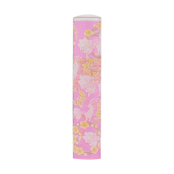 恋するはんこ[個人印鑑]・B和柄・踊りうさぎ-赤・NK-088・印面直径約12mm×長さ約60mm・ケース別売り