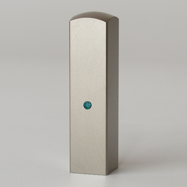 落款印(姓名印・氏名印)シルバーブラストチタン・角寸胴(スワロフスキーアタリ付)・エメラルド・印面約15x15mm・長さ約60mm・ケース別売り