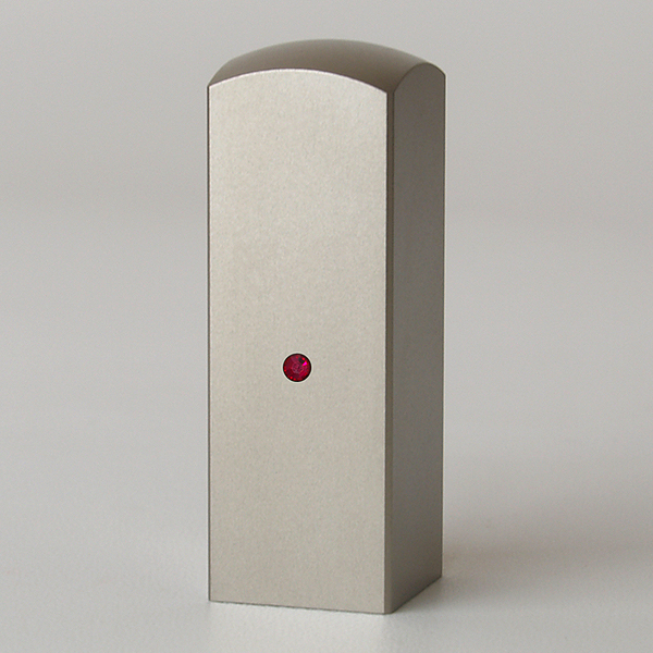 落款印(姓名印・氏名印)シルバーブラストチタン・角寸胴(スワロフスキーアタリ付)・ルビー・印面約21x21mm・長さ約60mm・ケース別売り