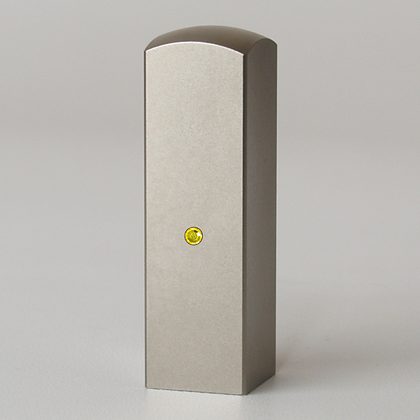落款印(姓名印・氏名印)シルバーブラストチタン・角寸胴(スワロフスキーアタリ付)・シトリン・印面約18x18mm・長さ約60mm・ケース別売り