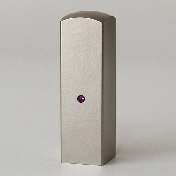 落款印(姓名印・氏名印)シルバーブラストチタン・角寸胴(スワロフスキーアタリ付)・アメジスト・印面約18x18mm・長さ約60mm・ケース別売り