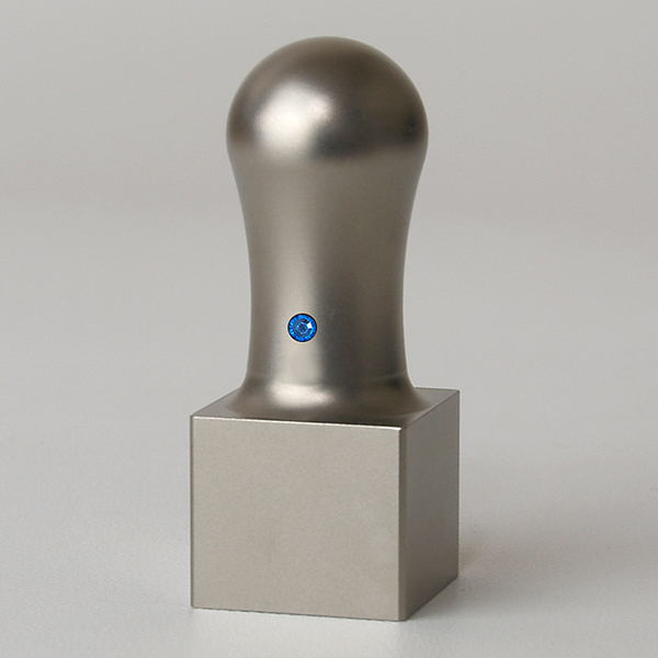 落款印(姓名印・氏名印)シルバーブラストチタン・角天丸(スワロフスキーアタリ付)・サファイア・印面約24x24mm・長さ約60mm・ケース別売り