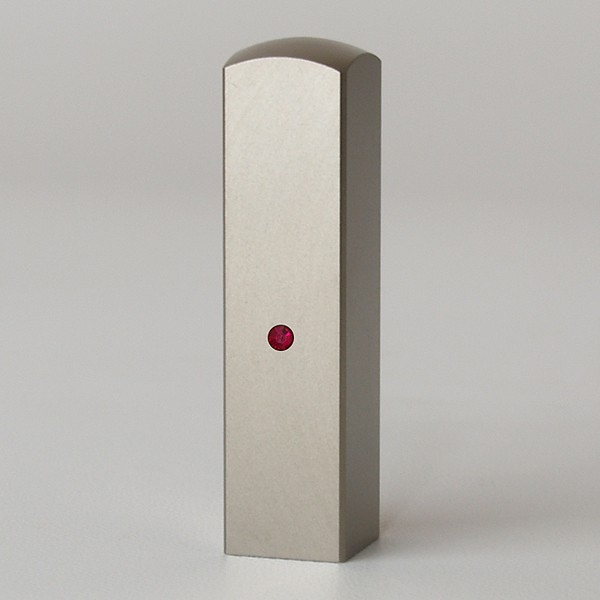 蔵書印・シルバーブラストチタン・角寸胴(スワロフスキーアタリ付)・ルビー・印面約15x15mm・長さ約60mm・ケース別売り