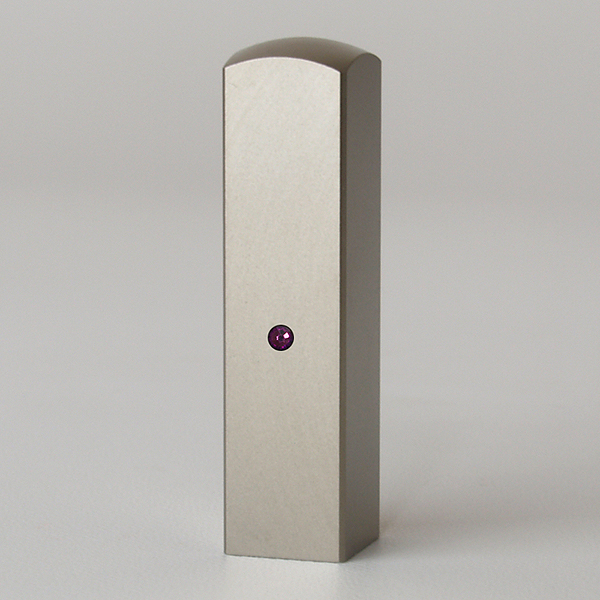 蔵書印・シルバーブラストチタン・角寸胴(スワロフスキーアタリ付)・アメジスト・印面約15x15mm・長さ約60mm・ケース別売り