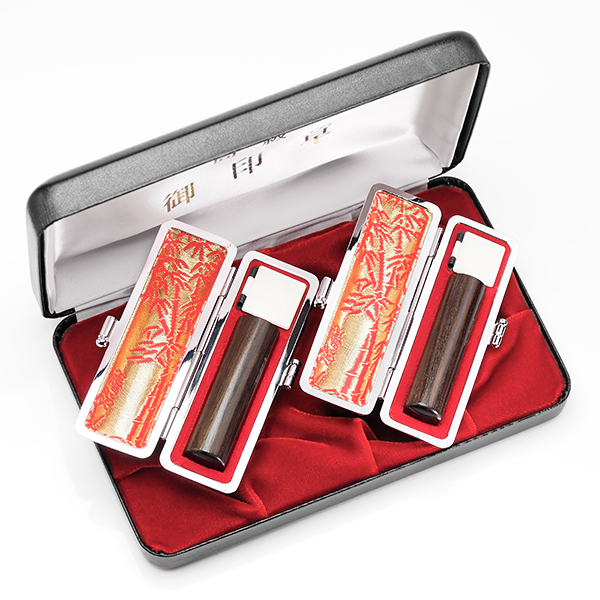 個人印鑑2本[手彫り仕上げ]・黒檀(アタリ有無選択可能)・もみ革ケースラグジュアリーセット+エクセレントセットケース
