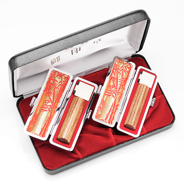 個人印鑑2本[手彫り仕上げ]・彩樺(アタリ有無選択可能)・もみ革ケースラージセット+エクセレントセットケース