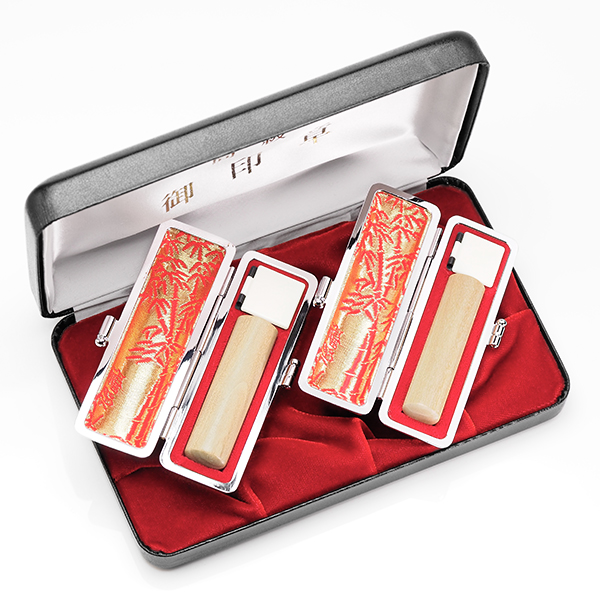 個人印鑑2本[手彫り仕上げ]・白檀(アタリ無し)・もみ革ケーススタンダードセット+エクセレントセットケース