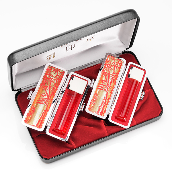 個人印鑑2本[手彫り仕上げ]・琥珀(アタリ無し)・もみ革ケースラグジュアリーセット+エクセレントセットケース