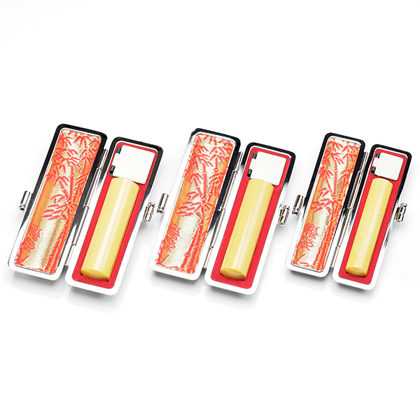 個人印鑑3本[手彫り仕上げ]・薩摩本柘(アタリ有無選択可能)・エンボスオーストリッチケースラージセット