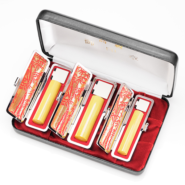 個人印鑑3本[手彫り仕上げ]・薩摩本柘(アタリ有無選択可能)・エンボスオーストリッチケースコンパクトセット+エクセレントセットケース