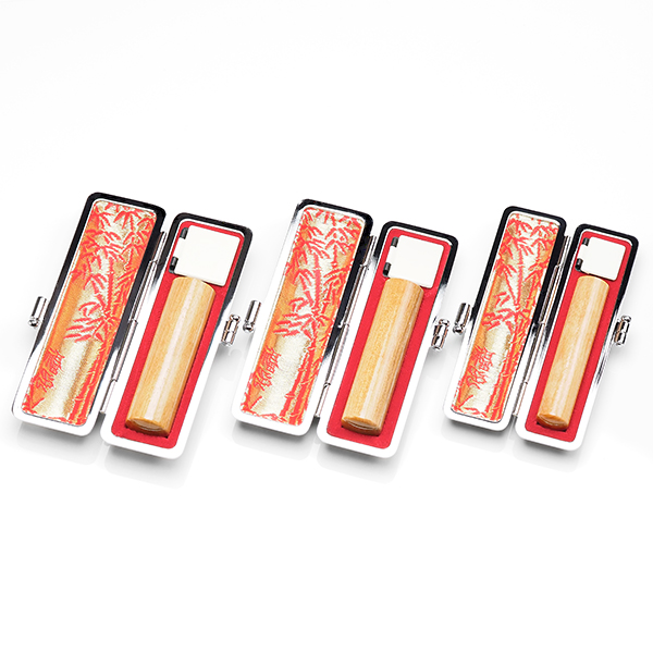 銀行印(13.5mm)×1 認印(10.5mm)×1 エンボスオーストリッチケース(3色から選択可能)・13.5〜15mm用×2 エンボスオーストリッチケース(3色から選択可能)・10.5〜12mm用×1
