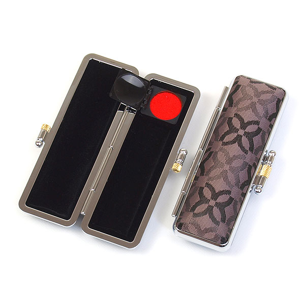 ご印鑑ケース[丸寸胴用]・モノグラム(ビター)印鑑長さ約60mm・印面直径13.5mm〜15mm用・簡易朱肉付き