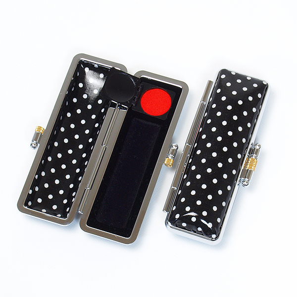 ご印鑑ケース[丸寸胴用]・水玉(くろ)印鑑長さ約60mm・印面直径13.5mm〜15mm用・簡易朱肉付き