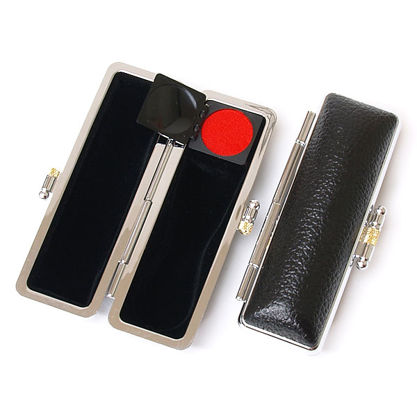 ご印鑑ケース[丸天丸用]・ネオクローム法人印鑑ケース・牛もみ革(外装ブラック・内張ブラック)印鑑長さ約60mm・印面直径16.5mm〜18mm用・簡易朱肉付き