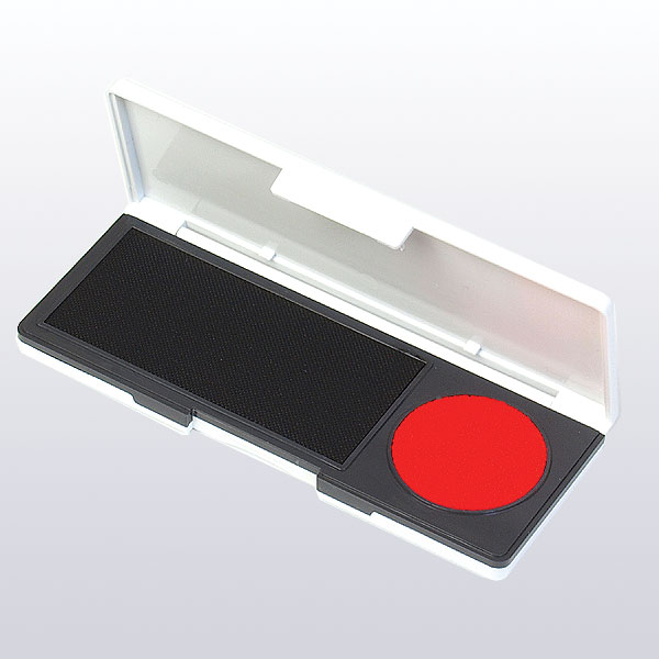 朱肉とスタンプ台が一緒になった便利な朱肉。シュスタミニはストッパー付きで持ち運びにも便利