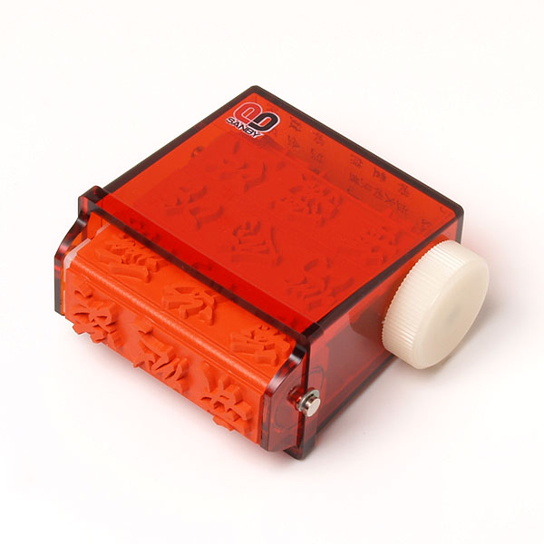 本体に付いているダイヤル1つで8パターンの印字を切り替え可能な大変便利な回転式のゴム印です。 |