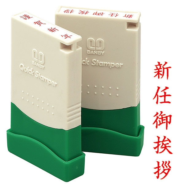 サンビー・クイックスタンパー(既製品) MEタイプ・名刺用ご挨拶印【新任御挨拶】(縦)インク色:赤色[SANBY・QUICK STAMPER・QMET-3]