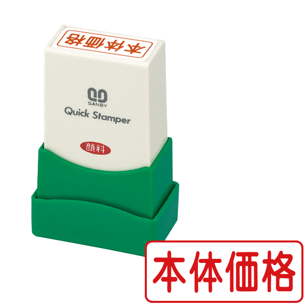 スタンプ台なしですぐに使える浸透印クイックスタンパーは、やさしく 紙面に落としてあげるだけで、鮮明な印影が得られる便利なスタンプです。 連続捺印も容易でインクの補充も可能なので繰り返し使えて経済的です。 消費税対応タイプは「税抜価格」など、消費税率の変更に伴う価格表示の 対応に最適なスタンプです。 |