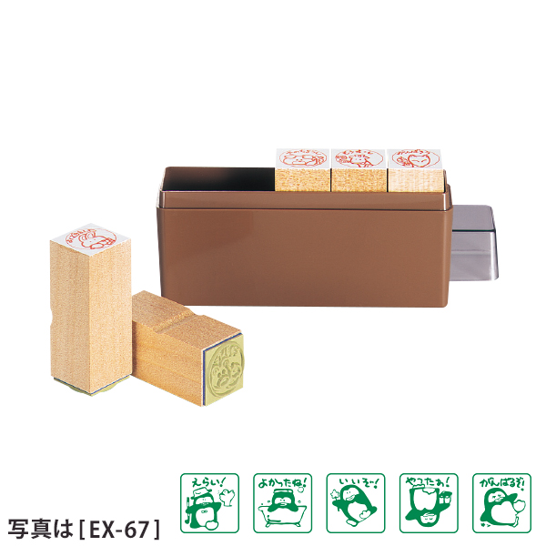 ふれあい評価印 EXシリーズ(ゴム印) ◆印面サイズ:22mm角 ◆ケースサイズ:W130×D33×H67mm(プラ) ※絵柄の変更、単品販売はお受け出来ません。 ※印影見本は実寸サイズではございません。 ※捺印には別途スタンプ台が必要となります。 |