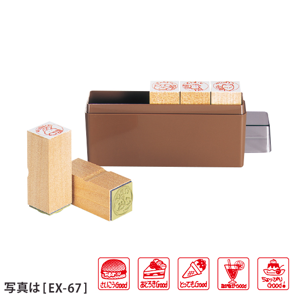 ふれあい評価印 EXシリーズ(ゴム印) ◆印面サイズ:22mm角 ◆ケースサイズ:W130×D33×H67mm(プラ) ※絵柄の変更、単品販売はお受け出来ません。 ※印影見本は実寸サイズではございません。 ※捺印には別途スタンプ台が必要となります。 |