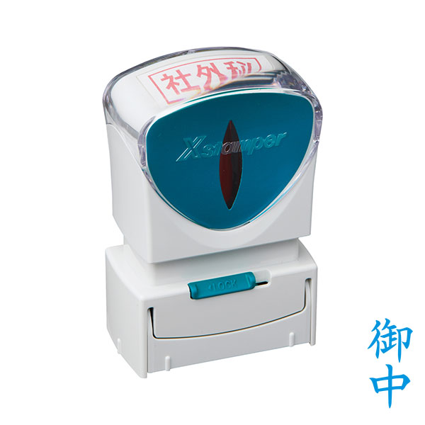 シャチハタ・Xスタンパー・ビジネス用キャップレスA型【御中】縦・インク色:藍[X2-A-005V3]/商品コード:72923