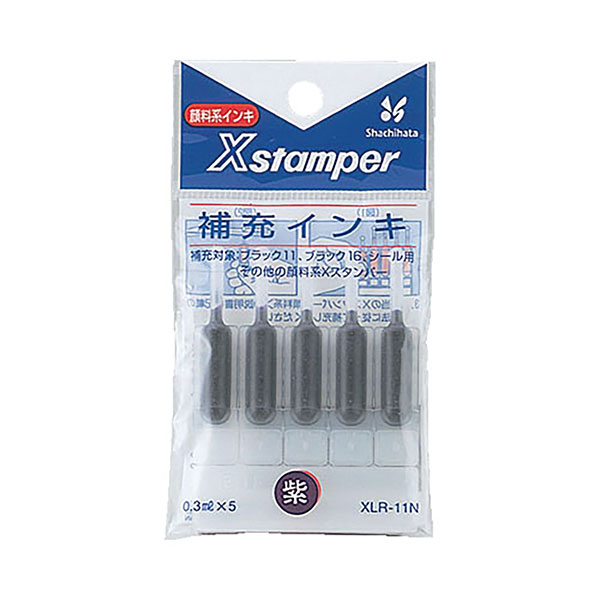 シャチハタ・補充インク・顔料系補充インキ0.3mlx5[XLR-11N]・ブラック11・ブラック16・シール用・データーネーム用(紫)/商品コード:35701