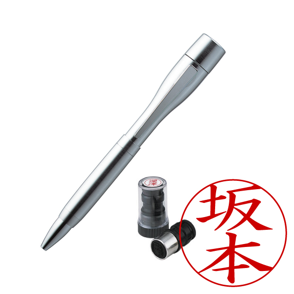 シャチハタ・ネームペン・ポケット・シルバー・ボールペン+ネームペン用ネームX-GPS・印面直径:9mm・インク色:朱・既製品[Shachihata・Xstamper・POCKET・TKS-NPS1+X-GPS]/商品コード:27610:49100