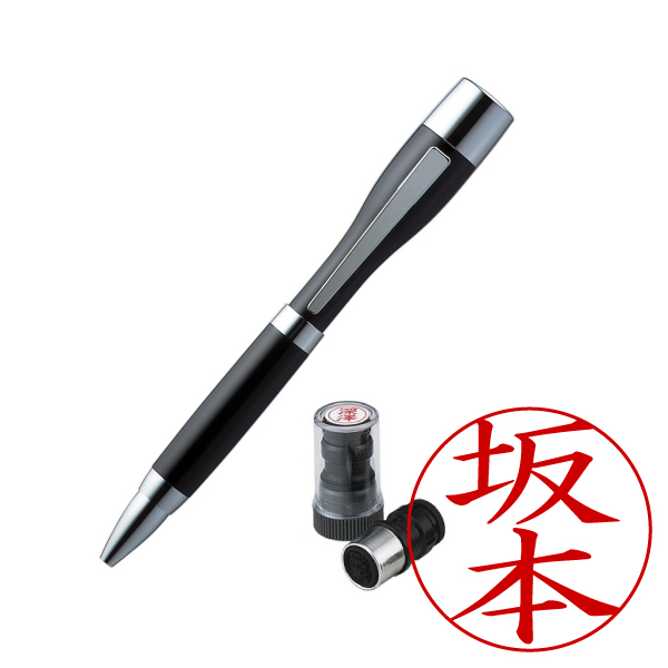 シャチハタ・ネームペン・ポケット・ブラック・ボールペン+ネームペン用ネームX-GPS・印面直径:9mm・インク色:朱・既製品[Shachihata・Xstamper・POCKET・TKS-NPC1+X-GPS]/商品コード:27714:49100