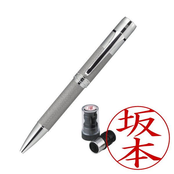 シャチハタ・ネームペン・カーボネックス・シルバー・ボールペン+ネームペン用ネームX-GPS・印面直径:9mm・インク色:5色より選択・既製品・メーカー在庫品[Shachihata・Xstamper・NAMEPEN・CARBONEX・TKS-CX1+X-GPS]/商品コード:54801:49100