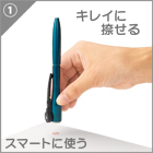 | 便利なキャップレスタイプ | スライド式でワンタッチ | シャープペンシルも使える | 繰り返し使えて経済的 |