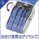 握りやすくて捺しやすい回転ゴム印、エルゴグリップ欧文日付タイプ。
