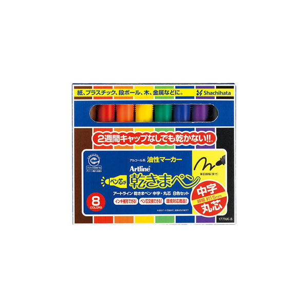 シャチハタ・アートライン・乾きまペン油性マーカー・中字・丸芯・8色セット[Shachihata・Artline・177NK-8S]/商品コード:75722
