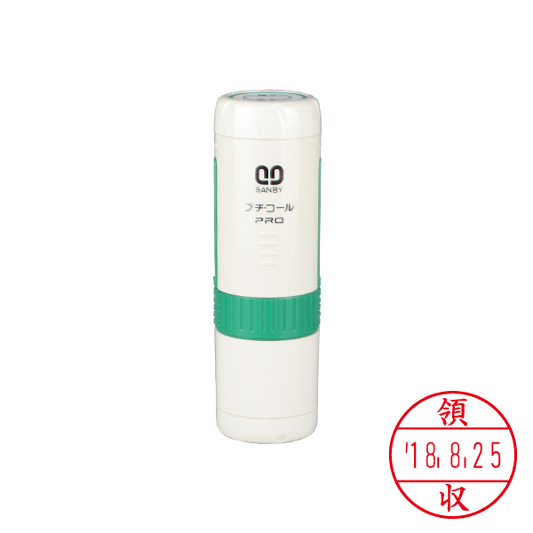 サンビー・プチコールPRO12(日付印)・元号・略西暦表示・印面直径:12mm(既製品・記帳用タイプ)【領収】・キャップ式・グリーン[SANBY・PETIT CALL PRO・PTP-12K]
