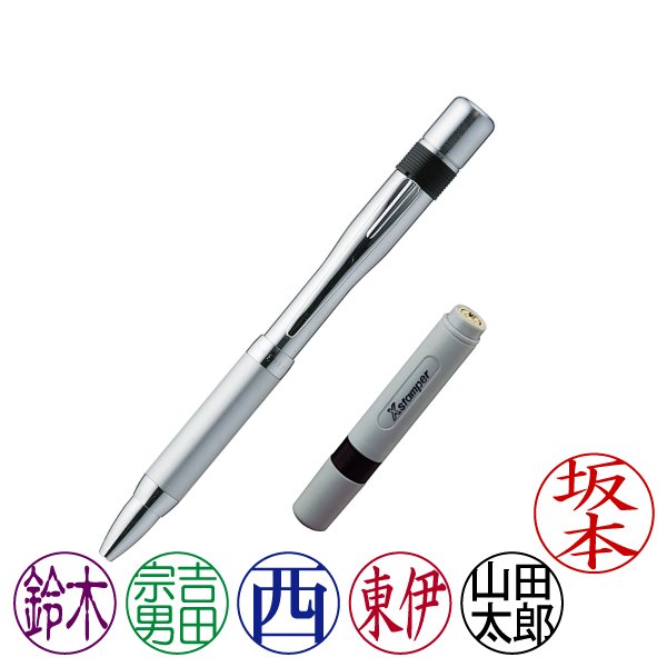 シャチハタ・ネームペン6・シルバー・ボールペン+ネーム6(別注品Aタイプ)・インク色:6色より選択[Shachihata・Xstamper・NAMEPEN6・TKS-AMN+XL-6]/商品コード:50501:40900