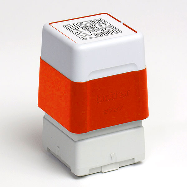 ブラザースタンプ・蔵書印・brother2727[浸透印]・ラバーグリップタイプ(本体:オレンジ・インク色:朱・印面24x24)